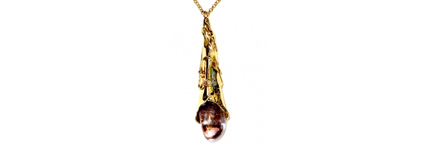 Il est tout à fait possible de faire preuve d'une grande maîtrise de son art sur une petite pièce artisanale, mais c'est un travail d'horloger. À la lumière de ses néons, dans son antre empli de toutes sortes de machines et d'outils, l'artisan créateur de l' Atelier Pik a su manipuler la matière avec finesse et précision pour un rendu délicat. Ces petits pendentifs artisanaux exprimant chacun leur singularité seront sublimés sur une peau de femme car l'aspect fluide et vibrant de ce travail original du métal prendra enfin vie. Ils sont montés sur une jolie chaîne fine. Souvent ornés d'une pierre semi-précieuse ces bijoux fantaisie sont étudiés pour mettre celles-ci en valeur tout en gardant en vue l'équilibre de la création. L'Atelier Pik possède une très grande collection de pierres et de gemmes que nous vous invitons à découvrir sous la rubrique qui leurs est consacrées. Ces petits pendentifs sont portables au travail comme en soirée, leur taille idéale en faisant un bijou fait main très facile à porter.