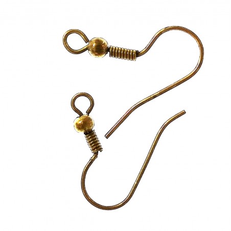 Crochets d'oreilles avec spirale et boule. Ils sont fabriqués en laiton plaqué bronze sans nickel.