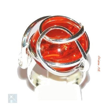 Bague fantaisie en argent plaqué confectionnée en fils de laiton à l'intérieur de laquelle se trouve fixé un cabochon de diamètre 16 mm en verre teinté qui saura vous ravir par sa couleur pétillante et par la délicatesse de ses formes.
