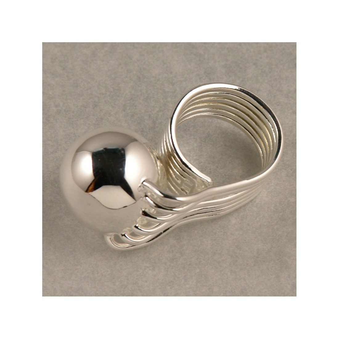 Bague unique en forme de grosse boule argent avec la base réglable permettant de l'agrandir de plusieurs tailles. Elle est fabriquée en cuivre et plaquée argent à 20 micromètre. Création artisanale de qualité.