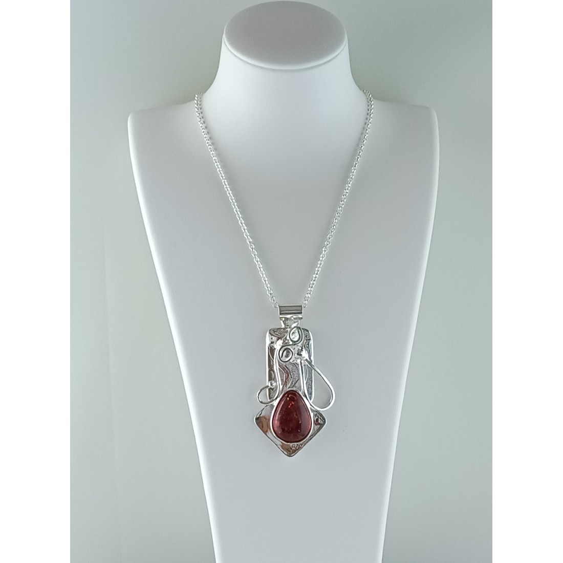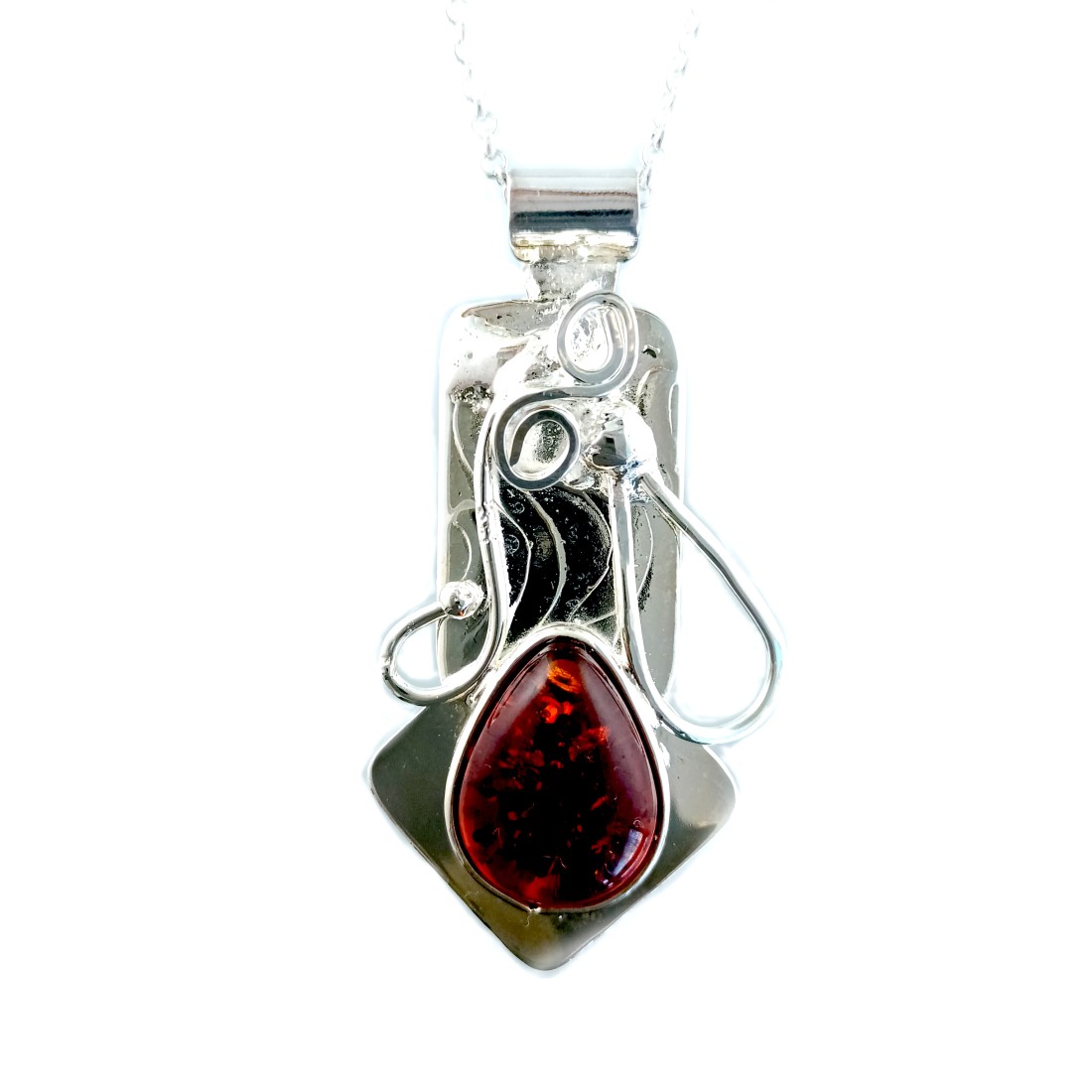 Créations uniques, pendentif artisanal plaqué argent avec ambre véritable sur une chaîne de 45 cm.