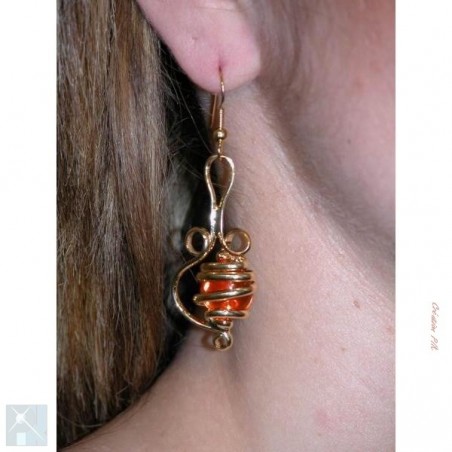 Boucles d'oreilles dorées-création de bijoux fantaisie, confectionnées en fil de laiton et accompagnées de cabochons en verre teintés. Les couleurs apportent des nuances subtiles au fil de laiton doré, ce qui donne à l'ensemble un aspect harmonieux qui vous permettra de les porter avec tout type de tenue et en toute occasion.