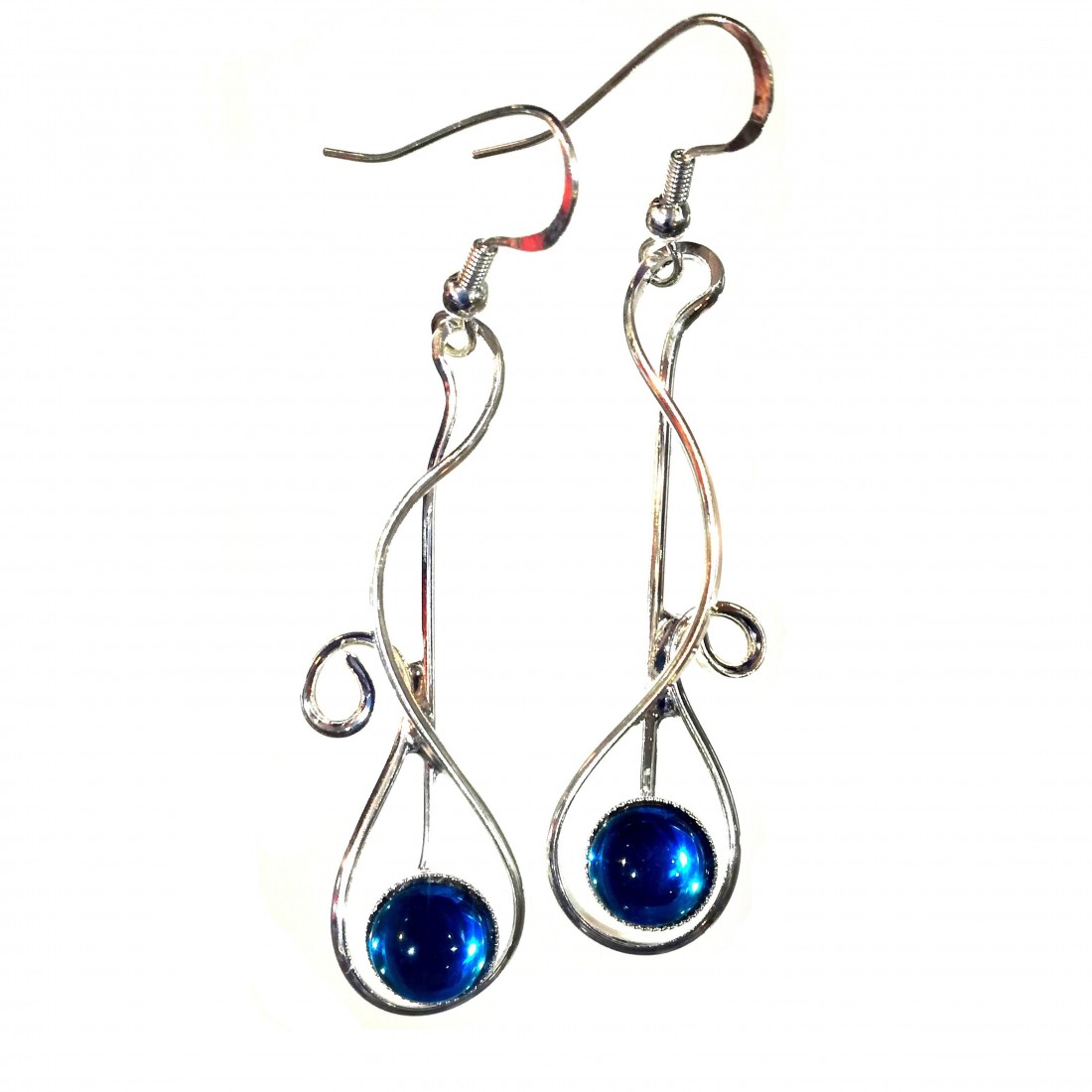 Boucles d'oreilles, délicates et légères en forme d'un petit coeur décorées d'un petit cabochon en verre teinté sont fabriquées à la main. Création artisanale en fil de laiton plaqué argent à 15 microns. Les crochets sont livrés avec les bouchons de sécurité en plastique et sont en plaqué-argent. Si vous préférez les avoir en argent massif vous pouvez les commander dans la rubrique accessoires. Sur simple demande par mail nous les remplacerons avant l'envoi de votre commande.