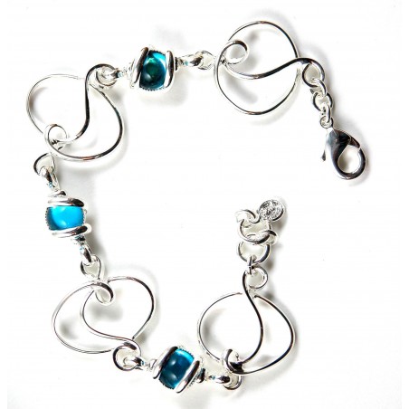 Bracelet artisanal argent et bleu clair. Création Atelier PIK.