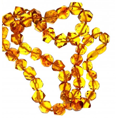 Collier fabriqué en ambre naturel de la mer Baltique de couleur cognac. Tous nos bijoux sont soigneusement livrés avec une pochette cadeau.