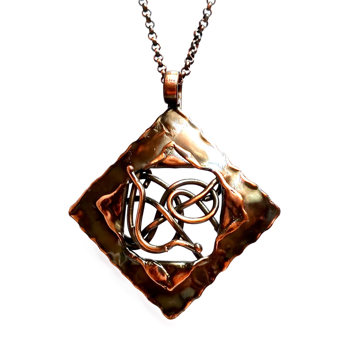 Pendentif artisanal unique, fait en laiton. Vous avez le choix entre un pendentif doré à l'or fin, en bronze vieilli ou en cuivre, ce qui est très joli et bien moins coûteux. Vendu avec une chaîne de 45 cm. Dimensions: longueur avec attache environ 50 mm et la largeur 35 mm. Comme tous nos bijoux - garantie sans nickel.