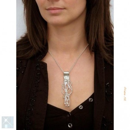 Grand pendentif de créateur, plaqué argent (15 microns ), sur une chaîne épaisse de 45 cm. Dimensions du pendentif: longueur 95 mm, largeur 25 mm. Matière: le laiton.
